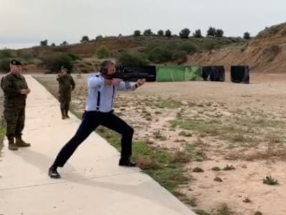 Ortega-Smith ha sido también protagonista de la sesión porque la Comisión de Defensa ha debatido su participación en un ejercicio de tiro con un fusil HK en una base de la Brigada Paracaidista en enero pasado. El coronel jefe del curso de defensa nacional al que asistía el dirigente de Vox fue relevado y se cambiaron las normas del Centro Superior de Estudios de la Defensa Nacional (Ceseden) y de la Escuela Superior de las Fuerzas Armadas (Esfas) para prohibir que sus alumnos puedan disparar armas o tomar imágenes dentro de bases militares, según la portavoz socialista Begoña Nasarre. Sin embargo, no fue cesado el coronel, ya que no perdió su destino, simplemente dejó de dirigir el curso que seguía Ortega Smith; y tampoco se prohibió que civiles puedan realizar ejercicios de tiro con armas de guerra en otras visitas a instalaciones del Ejército al margen de las organizadas por los dos centros docentes militares.
