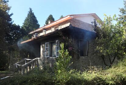 Las llamas han consumido el interior de la planta baja del chalé en el que situó la muerte de la niña Asunta la sentencia que condenó a sus padres a 18 años de prisión. Este crimen que conmovió a Galicia sucedió hace siete años, el 21 de septiembre de 2013, cuando a la menor, que ahora tendría 20 años, le faltaban pocos días para cumplir 13. Supuestamente, el fuego del que ha alertado un vecino en torno a las tres de la madrugada fue provocado porque presentaba varios focos en la planta baja, que ha quedado arrasada por dentro. La cantidad de material combustible desperdigado en los salones, desde cientos de papeles y libros hasta sofás y colchones, ha generado un humo espeso y negro que ascendió hasta el piso superior de esta edificación de 400 metros cuadrados y tres alturas. La casa seguía humeando por las ventanas abiertas hoy domingo por la tarde.
