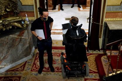 El vicepresidente del Gobierno mantiene en su escrito que tampoco “puede existir un supuesto delito de descubrimiento y revelación de secretos”, que el instructor le atribuye por guardar durante seis meses la tarjeta del móvil de Bousselham que había recuperado a través de la extinta revista Interviú. El propio juez reconocía en su exposición razonada que este delito requiere una denuncia previa de la víctima. Y, como recuerda el abogado de Iglesias, la excolaboradora ya ha manifestado sus intenciones de no proceder contra su exjefe: “La víctima de la sustracción del móvil siempre ha expresado que Pablo Iglesias es perjudicado y víctima como ella. Y ha sostenido que nada tiene que reclamarle ni pedirle”.