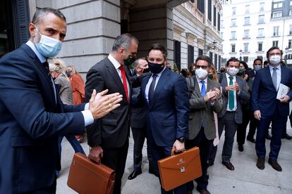 Después de cinco horas y 20 minutos de la sesión final de la moción de censura que acababa de perder, el líder de Vox, Santiago Abascal, se dirigió por un pasillo hacia el ascensor que lleva a la planta de su despacho en el Congreso. Iba rodeado, como casi siempre, de un tropel de colaboradores y otros diputados. Seguía noqueado como reconoce a EL PAÍS: “Sí, estoy tocado, no me esperaba ese ataque tan personal por parte de Pablo Casado”. Abascal acepta así que el líder del PP le pilló por sorpresa y con el pie dialéctico cambiado: “Sí, nos conocemos bien y teníamos hasta hoy una buena relación, aunque hace varias semanas que no hablamos, pero nunca me imaginé que podía hacerme un ataque de esta naturaleza y menos aún en lo personal”.