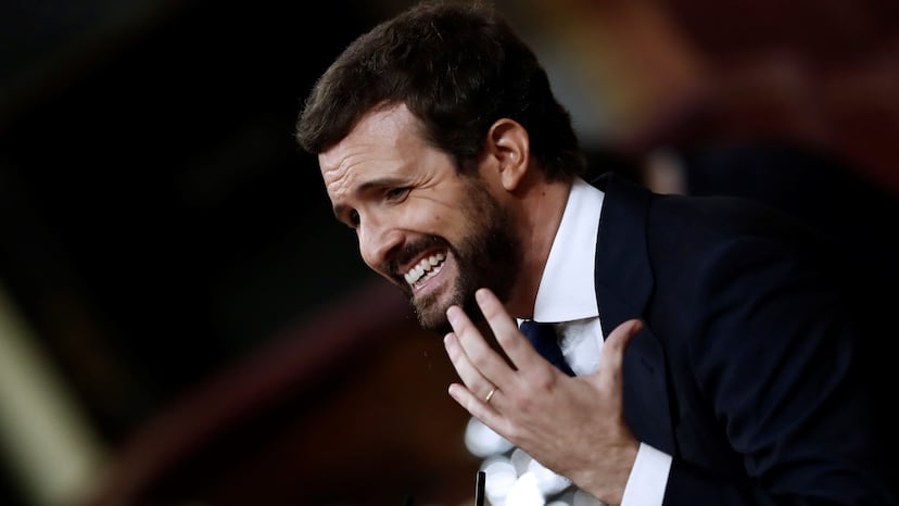 El PP destilaba desconcierto desde el inicio de la semana, atrincherado en el hermetismo, incapaz de aclarar si votaría en contra o se abstendría, sin reunir siquiera a sus diputados, que debatían por los pasillos del Congreso cuál debería ser la mejor opción para hacer frente a la competencia electoral de Vox. Casado también se hizo de rogar en la mañana de este jueves. Entró al salón de plenos con la sesión ya avanzada, se sentó en su escaño, sacó los folios de su discurso y volvió a repasarlo con cuidado, subrayando algunos párrafos. Armado de ellos se subió a la tribuna para acometer el “pateo inmisericorde” al líder de Vox.
