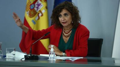 La portavoz del Gobierno y ministra de Hacienda, María Jesús Montero, ha comparecido en rueda de prensa, tras la reunión del Consejo de Ministros en el que se han aprobado los Presupuestos Generales del Estado. Entre las medidas aprobadas, hay un incremento en el impuesto de sociedades para grandes grupos empresariales, una subida de dos puntos en el IRPF de las rentas por encima de 300.000 euros (y tres puntos para las rentas de capital de más de 200.000) y un alza de un punto en el impuesto sobre los patrimonios de más de 10 millones. Por el lado del gasto, además de las ya aprobadas, como el ingreso mínimo vital, el Gobierno introducirá en las nuevas cuentas una subida del 0,9% de las pensiones. Las nuevas cuentas ofrecerán un adelanto de 27.000 millones de los fondos europeos y cambios impositivos, un IVA del 21% a las bebidas azucaras y edulcoradas, la creación de un nuevo tributo a los envases de plástico de un uso, una fiscalidad verde y modificaciones en la imposición directa e indirecta. Estos Presupuestos tienen un 10,3% más de inversión que los anteriores, incluyendo el adelanto de los 27.000 millones del plan europeo.