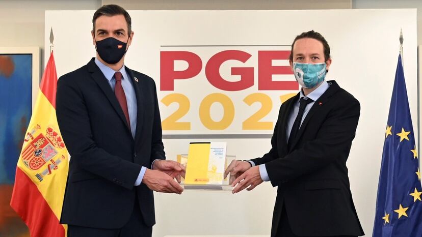 Sánchez e Iglesias han presentado este martes las claves de los Presupuestos Generales del Estado antes de la celebración del Consejo de Ministros. El acto, sin preguntas ni presencia de la prensa, ha tenido lugar en la sala Tapies de La Moncloa. Será María Jesús Montero, la ministra de Hacienda, quien explique las cuentas ante los periodistas después de que se aprueben en el Consejo de Ministros.
