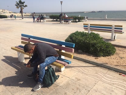 Un poco más al Sur, en la provincia saharaui de Dajla, cientos de jóvenes marroquíes aguardan en hostales, apartamentos, o en la calle, la señal para subirse a la barca rumbo a Gran Canaria, Lanzarote o Tenerife. Las tres islas hacen de parapeto a las corrientes Atlánticas, abriendo canales navegables a motor para alcanzar sus costas en una sola jornada.
