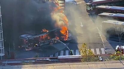 Un espectacular incendio en las cocheras de la EMT en Valencia calcina 16 autobuses y afecta a otros siete