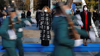 El Congreso de los Diputados ha celebradoeste domingo el 42º aniversario de la Constitución en un acto distinto a todos los anteriores a causa de la pandemia. El hemiciclo de la Cámara baja no ha acogido este año el día grande de esta institución, y el acto se ha trasladado a la calle, a la Carrera de San Jerónimo, donde muchos menos asistentes de los habituales escucharon el discurso de la presidenta del Congreso, Meritxell Batet. “Gracias al estado de alarma recogido en la Constitución estamos dando una respuesta eficaz a la peor pandemia del último siglo. Y tras dos años de bloqueo, las Cortes han aprobado unos Presupuestos que elevan a la máxima categoría el alma social de nuestra Constitución”, ha declarado el presidente del Gobierno, Pedro Sánchez. El líder del PP, Pablo Casado, ha expresado que “los enemigos de la nación están en el Gobierno”, mientras el Gobierno ha reprochado al PP el bloqueo del Poder Judicial.