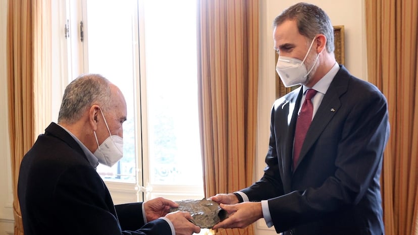 “No hemos querido dejar de hacer la entrega”, ha afirmado Felipe VI, según se aprecia en un vídeo difundido por la Casa del Rey en su cuenta de Twitter. “El premio es este y la medalla viene después”, ha añadido al entregarle el galardón. “No podemos hacer discursos aquí”, ha bromeado a continuación el Monarca.