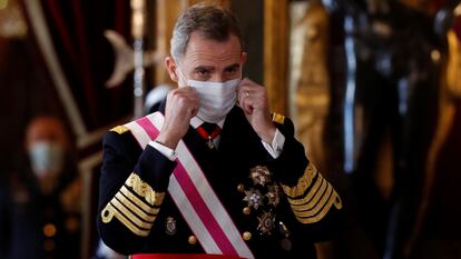 Felipe VI ha aprovechado este miércoles su tradicional discurso de la Pascua Militar, ante la cúpula de las Fuerzas Armadas y comisiones representativas de los ejércitos, para recordar a los militares “los deberes” a los que obliga la Constitución, “con la que todos estamos incondicionalmente comprometidos”, según sus palabras. El Rey no ha aludido a los mandos retirados que le escribieron cartas contra el Gobierno ni a los que realizaron comentarios golpistas en un chat, pero sí lo hizo la ministra de Defensa, Margarita Robles, quien rechazó la “intolerancia” y los “delirios” de una “insignificante minoría” de militares.