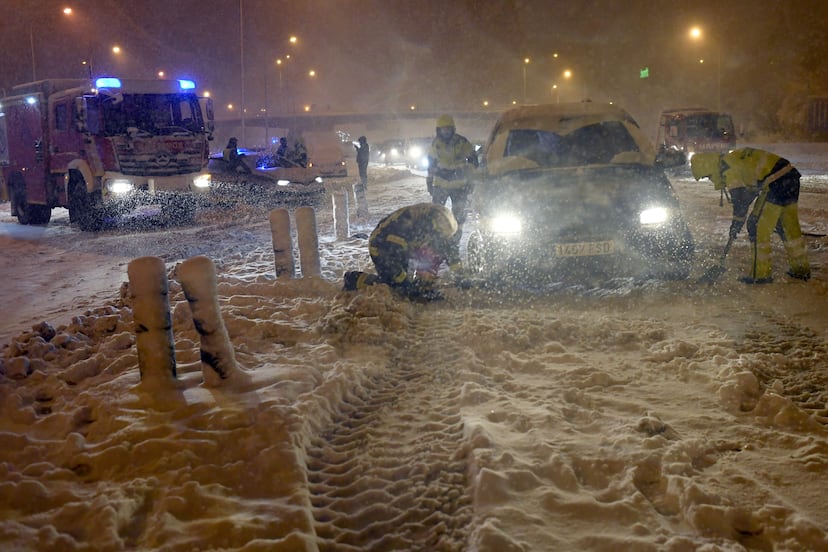 El temporal ‘Filomena’ deja atrapados durante la noche del viernes a centenas de conductores en las carreteras madrileñas. Los servicios de Emergencias ya han rescatado a todos durante este sábado