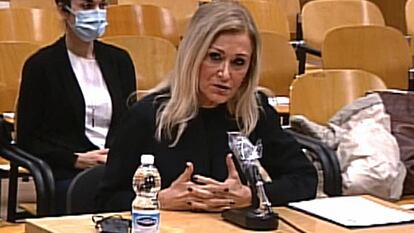 Cristina Cifuentes, expresidenta de la Comunidad de Madrid, ya ha puesto sobre la mesa su principal estrategia de defensa en el juicio del caso máster. Durante su declaración como acusada en la segunda sesión de la vista oral, que se ha celebrado este viernes, la exdirigente del PP ha responsabilizado a la Universidad Rey Juan Carlos (URJC) de la falsificación del acta del trabajo fin de máster (TFM) que la sienta en el banquillo y por la que la Fiscalía le pide tres años y tres meses de cárcel. Según ha asegurado, nunca pidió al centro docente que le enviaran el documento que, apenas unas horas después de que estallara el escándalo, exhibió ante los medios y en las redes sociales para tratar de esquivarlo. La política ha repetido que la universidad tomó la iniciativa de remitírselo y que, por ello, ella le otorgó credibilidad: “Creo que actué de buena fe”.