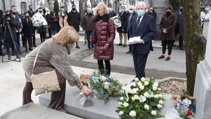 La familia y amigos de Gregorio Ordoñez han rendido homenaje este sábado en el cementerio de Polloe al político que “luchó para que el pueblo vasco no cayera bajo el yugo de ETA”. Su mujer, Ana Iribar y su hermana, Consuelo Ordoñez, acompañadas de la presidenta del Parlamento vasco, Bakartxo Tejería, el alcalde de San Sebastián, Eneko Goya y el presidente del PP vasco, Carlos Iturgaiz, entre otros concejales nacionalistas y socialistas, han reivindicado la figura del que entonces era concejal del PP el día en que se cumplen 26 años desde que un comando de ETA le asesinara de un tiro en la nuca en San Sebastián, mientras comía en el bar La Cepa.
