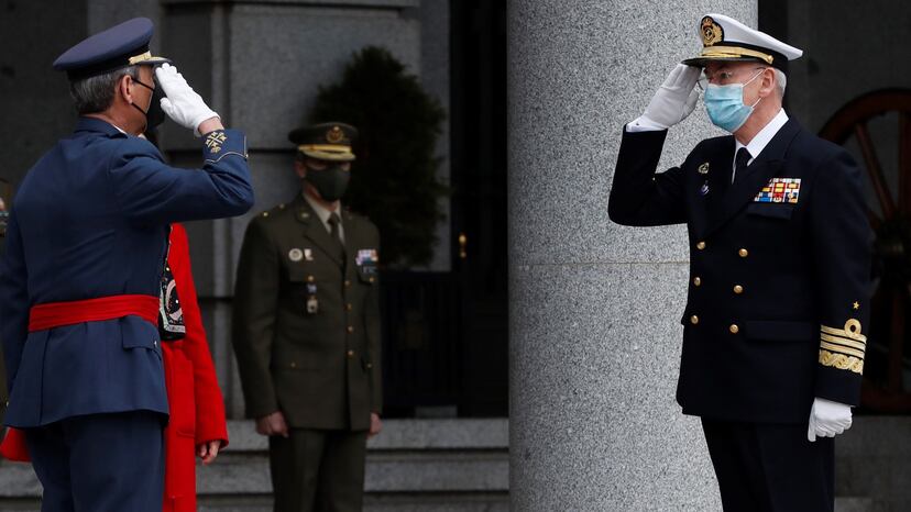 El nuevo jefe de la cúpula militar, el almirante general Teodoro López Calderón, ha tomado este jueves posesión de su cargo con palabras de elogio a su antecesor, el general del Aire Miguel Ángel Villarroya, quien pidió el cese tras la polémica provocada por su vacunación de la covid-19. En presencia de Villarroya, el nuevo jefe del Estado Mayor de la Defensa (Jemad) ha reconocido que se trataba de un “relevo imprevisto”, provocado por una “desafortunada circunstancia”, y le ha mostrado su “admiración y respeto”. Al presentar su dimisión, ha subrayado López Calderón, el general Villarroya “ha tomado una decisión que le honra, acorde a los valores y principios de las Reales Ordenanzas de las Fuerzas Armadas. Con este gesto, nos ha dado ejemplo y nos ha demostrado su categoría profesional y humana”.