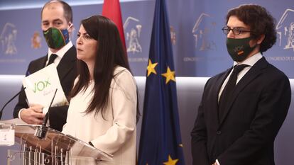 La secretaria general de Vox en el Congreso, Macarena Olona, ha convocado este jueves a las 10.30 una comparecencia de prensa para denunciar “el veto pactado como una falsa discrepancia y para las apariencias” entre el PSOE y Unidas Podemos para que Villarejo no sea uno de los primeros comparecientes de la comisión de investigación Kitchen, sobre el uso irregular de medios en los ministerios del Interior de los Gobiernos de Mariano Rajoy para tapar casos de corrupción del PP. Olona ha calificado a Villarejo de “pieza clave y nuclear” de la Operación Kitchen, por la relevancia de sus papeles y grabaciones, y se ha negado a aceptar sin más que los miembros de la comisión no puedan preguntarle por cuestiones relevantes para esclarecer ese caso. Por esa razón, la propia Olona envió este miércoles un requerimiento por escrito al abogado defensor del comisario jubilado para solicitarle una reunión en prisión y poder interrogarle si no acude finalmente al Congreso. El abogado consultó con su cliente y Villarejo ha aceptado esa oferta.