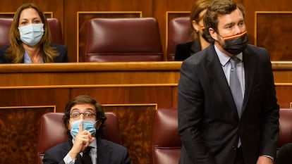 La sesión de control del Congreso se ha enrarecido más de lo habitual cuando el portavoz de Vox, Iván Espinosa de los Monteros, ha querido introducir en la discusión antes que nadie los polémicos carteles electorales racistas de su partido distribuidos por Madrid sobre la situación de los menores migrantes y en los que se hace una comparación entre el coste mensual de los que llaman menas ―acrónimo de menores extranjeros no acompañados― con la pensión más baja de una jubilada. Espinosa de los Monteros preguntaba a Calvo sobre la mala situación económica del país, pero al final introdujo que mientras no hay dinero para muchas cosas sí lo hay “para mantener a menas en toda España y a inmigrantes ilegales”. Vox está intentando por todos los medios incluir en la agenda de discusión de esta campaña el delicado asunto de la inmigración.