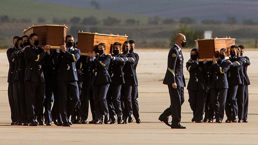 Los cuerpos de David Beriain, Roberto Fraile y Rory Young han llegado este viernes a las 8.55 a la base de Torrejón de Ardoz (Madrid) a bordo de un Airbus 310 del grupo 45 del Ejército del Aire. Los cadáveres han sido recibidos por familiares y amigos de los dos periodistas y por las ministras de Asuntos Exteriores, Arancha González Laya, y Defensa, Margarita Robles, así como por la embajadora irlandesa en España, Sile Maguire, y el secretario general de Reporteros Sin Fronteras, Alfonso Bauluz.