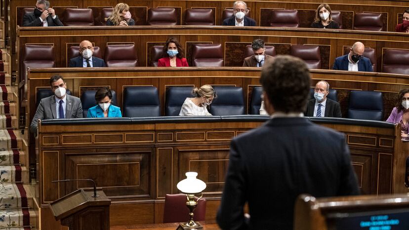 Casado compareció en el Congreso, en la primera sesión de control al Gobierno tras el 4-M, luciendo la medalla del triunfo de Ayuso. “En su circunscripción y la mía”, arrojó contra Sánchez, “Errejón le ha sorpassado”. Uno tras otro, los diputados populares que interpelaban al presidente se recrearon en el triunfo en las urnas. “Es el principio del fin del Gobierno Sánchez”, llegó a decir el número dos de Casado, Teodoro García Egea. “El Gobierno de la mentira tiene los días contados”, abundó la diputada Carolina España, quien remedó un viejo truco escénico de Pablo Iglesias en los años dorados de Podemos y, ante la ministra de Hacienda, María Jesús Montero, imitó la cuenta atrás de un reloj: “Tic, toc, tic, toc...”.