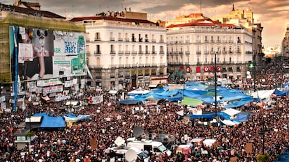 Hace 10 años que la sociedad civil española se echó a las calles para pedir una democracia más participativa, el fin del bipartidismo y un futuro digno. El 15 de mayo de 2011 miles de personas se concentraron en más de 50 ciudades españolas para pedir un giro político y social. La convocatoria del movimiento DemocraciaRealYa, en marzo de ese año, cristalizó en una acampada multitudinaria en la Puerta del Sol durante casi un mes, pero el caldo de cultivo se venía gestando desde hacía tiempo. La crisis de 2008 golpeó intensamente al país: el paro se disparó del 13,5% a más de un 20% en tan solo dos años.
