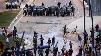 En las redes sociales circulan las imágenes de la policía alejando a la multitud de la zona más próxima a la frontera. Se trata de un mensaje claro hacia los emigrantes que no todos se resignan a aceptar. Este jueves por la mañana, decenas de emigrantes, tanto subsaharianos como marroquíes, seguían caminando por la carretera que conduce a Fnideq entre montañas.