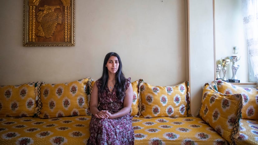 Zenib Laari, de 26 años, aparece en el salón de su casa, en un barrio periférico de Madrid, pasadas las siete de la tarde. Lleva unos meses encadenando dos jornadas laborales como profesora en un instituto y educadora social en un piso para menores extranjeros no acompañados. “Todo dinero es poco ahora mismo”, advierte la joven, que se casa a comienzos de octubre. Su madre trae dos vasos de leche y unas pastas y muestra orgullosa los más de 80 trofeos que su primogénita, campeona del mundo de Kenpo Karate en defensa personal en 2017, ha conquistado en los últimos años. “Perdona por el lío de la habitación, que estamos sacando la ropa de verano”, se disculpan. Laari, como la mayoría de los que participan en este reportaje, no quiere posicionarse políticamente sobre esta crisis, pero sí acepta compartir sus miedos ante la reciente escalada de tensión y sus inminentes planes de futuro.