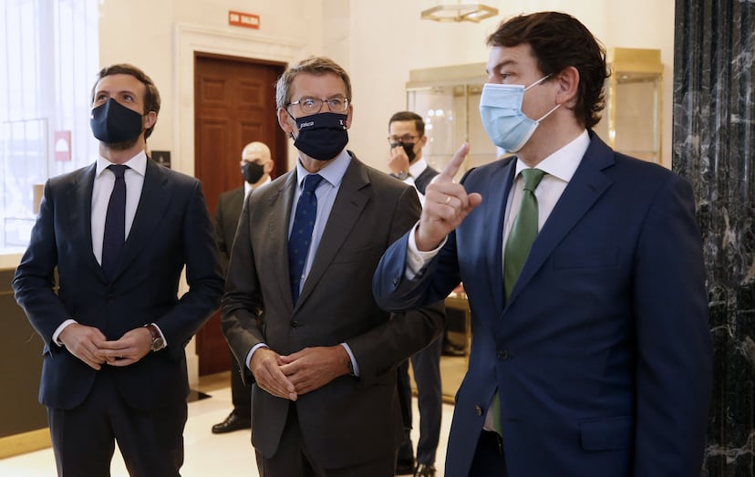 Las palabras de Feijóo, uno de los exponentes moderados del PP, contrastan con el hecho de que ninguno de los barones de perfil más centrista acuda a la plaza de Colón. En el caso del presidente gallego, porque ese día viaja al Vaticano para reunirse con el papa Francisco el lunes 14. Moreno Bonilla y Fernández Mañueco también se han escudado en cuestiones de agenda y personales. “No puedo porque son las fiestas de Salamanca y tengo algunas circunstancias personales que me impiden acudir”, se ha justificado esta mañana el presidente castellanoleonés, presente en el desayuno de Feijóo. “Estoy muy bien representado en Pablo Casado”, ha remachado. El presidente de Murcia, Fernando López Miras, aún no ha confirmado su presencia, pero tampoco ha declinado asistir.
