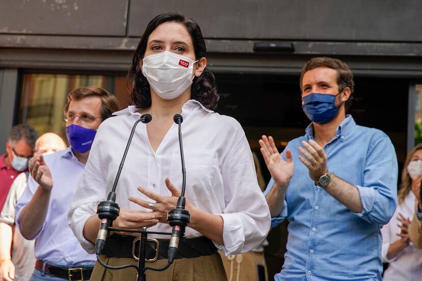 El tono medido de las palabras del líder del PP, Pablo Casado, en la protesta de Colón contra los indultos a los líderes independentistas ha quedado ensombrecido por la declaración de la presidenta de la Comunidad de Madrid, la popular Isabel Díaz Ayuso, que ha implicado al jefe del Estado en la concesión de la medida de gracia. Ayuso ha dicho de entrada que quería reivindicar el papel del Rey, pero acto seguido se ha lanzado a preguntarle: “¿Qué va a hacer el Rey de España, va a firmar esos indultos? ¿Le van a hacer cómplice [a Felipe VI] de esto?”. Ni Casado ni el alcalde de Madrid, José Luis Martínez Almeida, han aplaudido deliberadamente esas palabras de la presidenta madrileña, según fuentes conocedoras del PP. Ambos desconocían que Ayuso iba a hablar en esos términos del monarca.