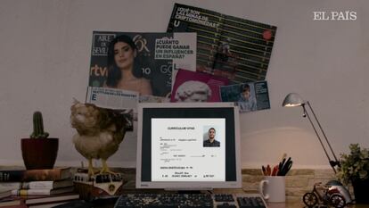 “Mientras el paro juvenil pone la piel de gallina, importa un huevo lo que diga tu currículum. Por eso Amparo escribe el mío”. Amparo es una gallina ponedora que picotea un teclado cubierto de pan rallado, rellenando al azar el currículo de Albert Rius, publicista barcelonés de 26 años. El vídeo que envió al buzón de EL PAÍS es una “protesta”, dice, “cansado” de no obtener “respuesta alguna”. Albert ha vuelto de Buenos Aires tras dos años trabajando en la agencia BBDO, donde ganó un premio del Círculo de Creativos Argentino. En su perfil de Linkedin hay contratos de 6 meses en prestigiosas agencias como Ogilvy o Saatchi & Saatchi. Pero no le sale nada. Albert envió también un gif, en el que intenta atrapar sin éxito a Amparo en el patio de la casa de su madre, a la que ha vuelto. Sobre la animación se lee: “Yo tratando de conseguir un trabajo”.