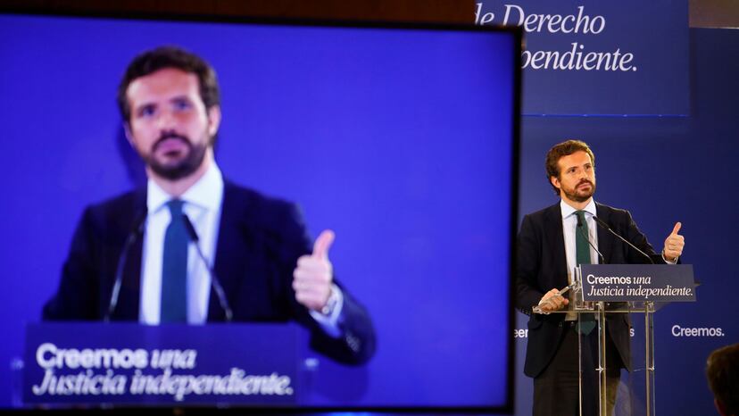 “También es fortalecimiento institucional no pactar a cualquier precio”, defiende Casado, que asegura que ahora mismo no hay un acuerdo para renovar el CGPJ porque el Gobierno no quiere pactar un cambio en el método de elección para que 12 vocales del órgano sean elegidos por los propios jueces. “Si el PSOE sigue bloqueando la renovación del CGPJ es porque quiere”, sostiene el presidente popular, que ha reconocido que el escollo para que se rompiera el último intento de acuerdo fue la propuesta del PSOE como vocales del juez José Ricardo De Prada y la magistrada en excedencia Victoria Rosell, ahora delegada del Gobierno para la violencia de género.