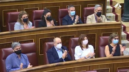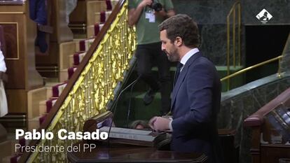La equiparación de Casado entre el régimen legítimo y los golpistas en 1936 acaparó minutos del debate. “La única ley legítima”, le replicó el presidente del Gobierno, “es la ley democrática. Y, por tanto, espero que usted se retracte de sus palabras. Quizá se alzaron aquellos que lo hicieron contra la ley y la democracia porque la única ley legítima es la de la democracia y entonces era la de la Segunda República”. La portavoz del PSOE, Adriana Lastra, criticó con dureza al líder del PP: “Así que las cunetas de nuestro país están repletas de gente que quería una democracia sin ley, ¿no? Claro, si están ahí será que algo hicieron, ¿no? ¡Qué vergüenza y qué indecencia la declaración que ha hecho!”. También censuraron a Casado Íñigo Errejón, de Más País —“Los golpistas se levantaron contra el pueblo español y contra la ley vigente en España y un demócrata lo debería tener meridianamente claro”—, y Joan Baldoví, de Compromís: “Me parece peligroso que por esta competencia con Vox se oigan aquí unas palabras que nunca se atrevería a decir la derecha europea. Son absolutamente impresentables, injustas y reprobables”.