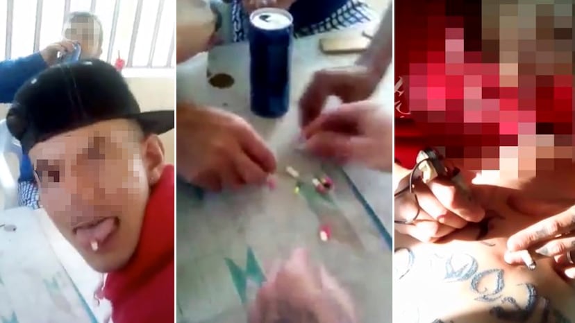 El segundo vídeo, de 2 minutos y 46 segundos de duración, fue grabado instantes después y en él aparecen hasta siete presos sentados alrededor de la mesa que han improvisado para jugar a las cartas. En esta ocasión, las imágenes muestran sobre la mesa una docena de cápsulas de fármacos. Se trata, según detallan fuentes penitenciarias, de benzodiazepinas (un psicotrópico utilizado contra la ansiedad) y antidepresivos inicialmente destinados a reclusos enfermos, pero que supuestamente habían sido desviados para el tráfico clandestino dentro de la prisión. En el vídeo, los reclusos presumen de su tenencia y empiezan a vaciar su contenido en un vaso de plástico en el que luego vierten un refresco de cola. El contenido es inmediatamente después bebido entre todos. “Es un cóctel molotov para que ustedes se lo gocen”, dice uno de los internos, mientras otro dice que “así se mueren los chavales en la cárcel”. Varios de ellos sacan la lengua y muestran en ella otras cápsulas.