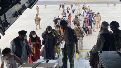 El operativo para la repatriación de la colonia de españoles en Afganistán, el cuerpo diplomático, los policías destacados en Kabul y el personal afgano que durante los últimos años ha trabajado con España está por fin en marcha. El primer avión de las Fuerzas Armadas, con 53 personas a bordo, ha despegado en torno a las ocho de la tarde (hora peninsular) del aeropuerto de Dubái rumbo a Madrid. Los primeros evacuados son trabajadores de la Unión Europea, 16 de ellos personal de la Embajada española, según fuentes próximas al operativo. Está previsto que este grupo llegue el jueves a la base aérea de Torrejón de Ardoz (Madrid), donde el Ministerio de Inclusión, Seguridad Social y Migraciones coordinará el dispositivo de acogida en las instalaciones militares. El presidente del Gobierno, Pedro Sánchez, reunirá a sus ministros por videoconferencia también este jueves para supervisar la operación.