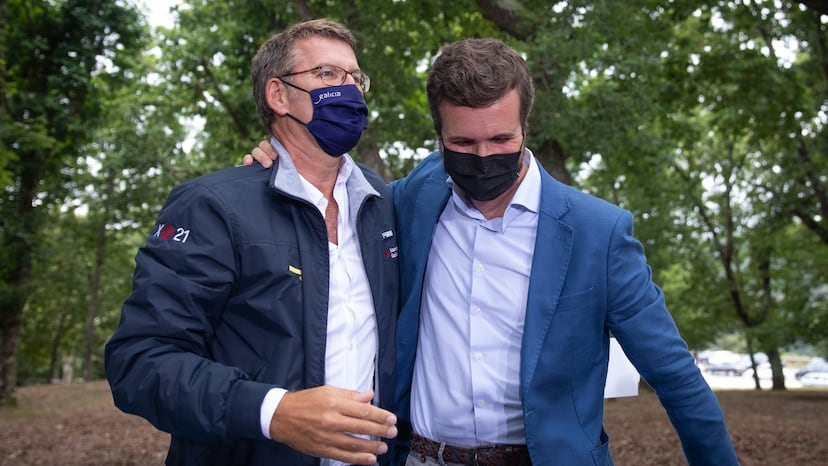 Feijóo, por su parte, ha secundado al líder del partido en sus ataques al Gobierno del PSOE y Unidas Podemos. En España “la mayoría está sometida a la minoría”, ha afirmado el presidente de la Xunta, y el Gobierno reparte hasta los fondos europeos “para mantenerse en el poder”. Sánchez es para Feijóo un presidente que ha llegado al cargo “utilizando lo que desune a España” y “pactando con cualquiera”. En uno de los momentos álgidos de su discurso, el líder del PP gallego ha sufrido un resbalón con los nombres: “Tenemos la obligación de mandar a Pablo Sánchez [sic] a donde enviamos a Pablo Iglesias”.