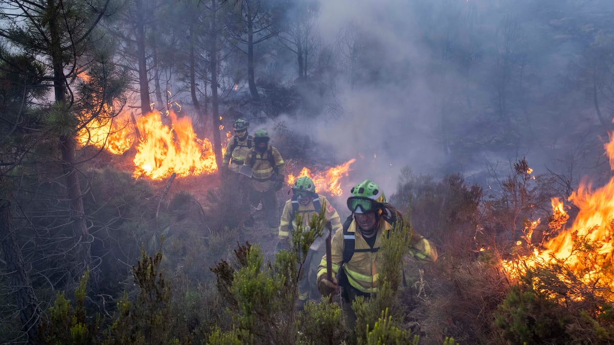 Las condiciones meteorológicas no están dando tregua a quienes trabajan sobre el terreno, que dependen por completo de los más de 40 medios aéreos que descargan agua para sofocar las llamas y mantener el perímetro durante el día. A estas alturas, solo la lluvia puede ayudar a extinguir el incendio. La previsión meteorológica no es halagüeña. Según la Aemet, el agua no se espera, con mayor probabilidad, hasta el martes. Responsables técnicos han insistido desde el viernes en que el aumento de medios empleados contra el fuego no es efectivo para detener el avance de las llamas o la apertura de nuevos frentes, como ha ocurrido este domingo después de una “prudente y lenta mejoría” tras la entrada de un suave viento de levante el sábado.