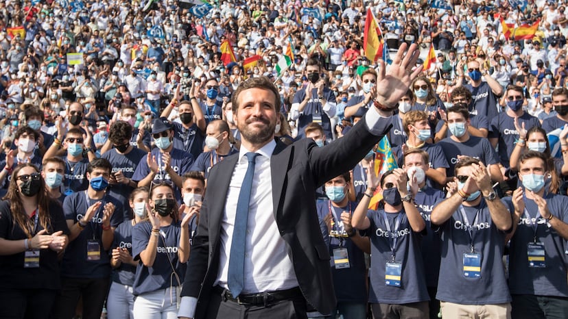El jefe de la oposición lidera la mayoría de las encuestas privadas ―no así el CIS― y podría, según los sondeos, gobernar con apoyo de la extrema derecha, aunque aún quedan dos años y medio para las elecciones. Pero los ultras resisten en los estudios demoscópicos y siguen en valores de voto cercanos al medio centenar de escaños que tienen ahora en el Congreso. El PP quiere arañar en ese caladero de voto, y Casado aprovechó el cierre de la convención nacional del partido, que se prolongó durante toda esta semana pasada, para presentar su proyecto. Un proyecto que achica el espacio a Vox.