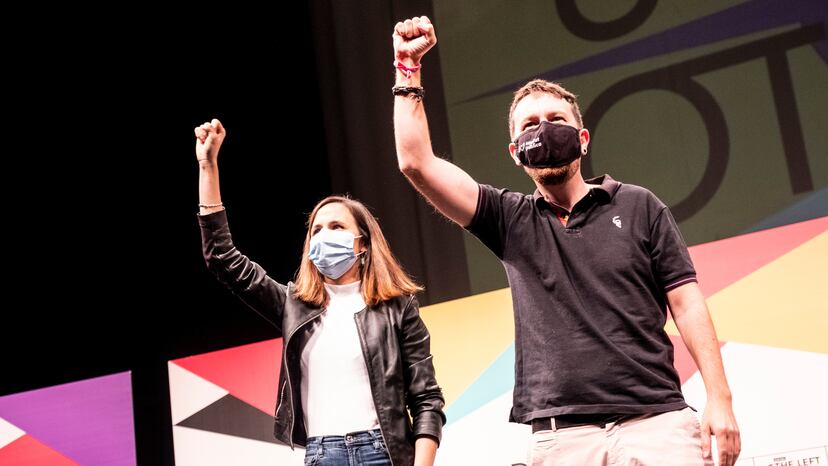 “Nuestro país no solo necesita que se cumpla íntegramente el acuerdo de coalición”, reza el texto del manifiesto con las conclusiones de las jornadas. Bajo el título Defender lo logrado, ir a por más, Podemos aboga por recuperar en la próxima década la “soberanía económica, industrial y productiva y aplicar el artículo 128 de la Constitución” con el fin “de “volver a disponer” de empresas públicas en los principales sectores estratégicos. “Necesita ir más allá en derechos feministas y construir un verdadero sistema público de cuidados, para que estos no sigan recayendo de forma invisible sobre los hombros de las mujeres”. El documento alude a la necesidad de emprender una transición ecológica justa “no tutelada” por el oligopolio eléctrico y de “utilizar” los más de tres millones de casas vacías del país para garantizar el derecho a la vivienda. También de una fiscalidad que reduzca la desigualdad y redistribuya la riqueza, de “poner orden” en la economía y de que la democracia "llegue a la Jefatura del Estado" caminando hacia "una nueva República plurinacional y solidaria". Podemos reconoce que muchas de esas metas “no son posibles” con la actual correlación de fuerzas y vaticina que la sociedad española “solo podrá alcanzarlas” si supera a los socialistas electoralmente. “Mientras el PSOE sea la primera fuerza, los avances en derechos van a ser más lentos”, incidió Belarra en su discurso.