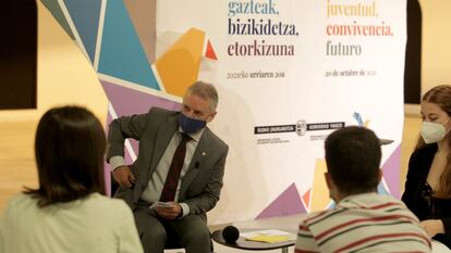 Todos ellos han coincidido este miércoles en Bilbao, en la jornada Juventud, Convivencia, Futuro con la que quieren participar en la construcción de una sociedad integradora en la que todas las personas tengan cabida, piensen lo que piensen y en la que no exista la violencia. Urkullu, acompañado de la consejera de Igualdad, Justicia y Políticas Sociales, Beatriz Artolazabal, les ha contado que sintió “alivio, alegría y esperanza” al conocer el contenido del comunicado de ETA en el que ponían fin a cinco décadas de asesinatos extorsiones y secuestros. El lehendakari ―que no se ha creído el paso dado por la izquierda abertzale, al compartir el “sufrimiento de las víctimas de ETA”― ha apostado por “asentar en valores y principios éticos” la convivencia futura, para impedir que algo así pueda volver a ocurrir en el País Vasco.