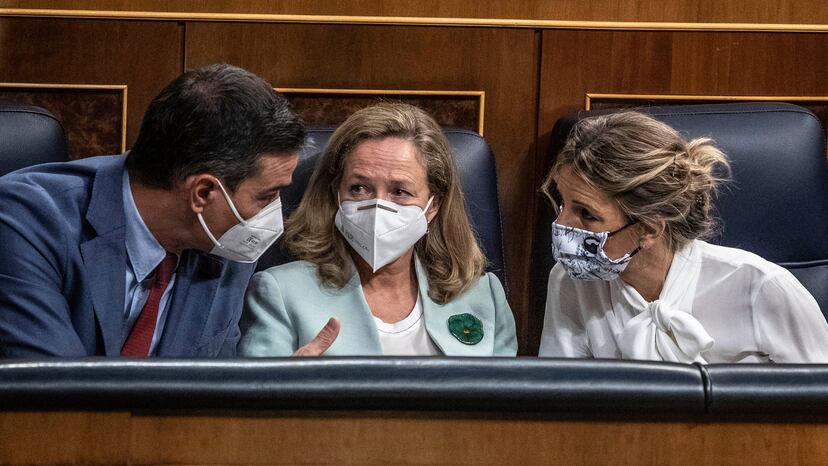 Sin embargo, la baraja se ha roto por el lado más sensible, el de la reforma laboral. Díaz ha pilotado este asunto y quiere seguir haciéndolo, porque en la negociación del Gobierno a Unidas Podemos le correspondió Trabajo, el ministerio más potente que controla, y es ella la que dirige la negociación con empresarios y sindicatos para promover una reforma laboral que tiene que estar lista antes de finales de año, porque ese es el compromiso con Bruselas. Las posiciones en este asunto entre Díaz y Calviño han estado muy alejadas desde el principio. Y además de la patronal, que también se resiste a muchos elementos de la reforma, hay un agente decisivo, la Comisión Europea. Bruselas desconfía ante la posibilidad de que el mercado laboral pierda flexibilidad, especialmente por las medidas relativas a la negociación colectiva. La Comisión avala así la posición de Nadia Calviño, que percute por ese flanco desde hace meses. Economía quiere matizar la prevalencia del convenio sectorial sobre el de empresas y la ultraactividad de los convenios (es decir, qué ocurre cuando un convenio vence y no se ha alcanzado un acuerdo). Trabajo defiende que eso está negro sobre blanco en el acuerdo de coalición y aduce que Bruselas ha dado el visto bueno a su posición, según las fuentes consultadas. Y está preparando un informe para convencer a la Comisión.