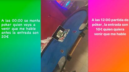 “Mañana, partida de póker. Quien quiera venir que me hable. La entrada a 10 euros”. “Abrimos a las 20.30 y cerramos a las 11.30. Todas las shishas [cachimbas o pipas de agua] hoy a siete euros”. Con estos mensajes se anunciaba en redes sociales un local clandestino en Málaga que se hacía llamar Tetería Narcos. En su interior se celebraban timbas ilegales con apuestas de dinero en metálico y se ofrecía un servicio de cachimbas para fumar a lo largo de toda la noche. La mayoría de clientes eran menores de edad, según comprobó la Policía Local de Málaga, que desmanteló el local después de que los agentes especializados en el rastreo en redes sociales y fuentes abiertas de internet consiguieran ubicar el local y, más tarde, conocer su funcionamiento con vigilancias sobre el terreno.