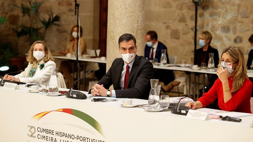 Pedro Sánchez da por zanjada la crisis de la última semana de la coalición, la más dura desde que Yolanda Díaz sucedió a Pablo Iglesias como vicepresidenta y al frente de Unidas Podemos. El presidente y La Moncloa, a través de las imágenes distribuidas de Díaz y Nadia Calviño paseando juntas por Trujillo durante la cumbre hispano-lusa en la ciudad extremeña, quieren dejar atrás la tensión de los últimos días. La Moncloa ha controlado absolutamente esas imágenes de las dos vicepresidentas porque la prensa no pudo acceder ni a los saludos ni a los paseos, al contrario de lo que es habitual. Aún así, las espadas siguen en alto y ahora viene lo más difícil: pactar el contenido de la reforma laboral en esta recta final de la negociación. Sánchez ha minimizado absolutamente los problemas en la rueda de prensa conjunta con Antonio Costa, el presidente portugués —que ha rechazado hablar de su propia crisis interna, que está a punto de acabar en elecciones— pero sí ha querido dejar claro que la reforma laboral se va a hacer sí o sí, porque es un compromiso del Gobierno y también porque es necesaria, en su opinión, para revertir muchos de los problemas que provocó la reforma del PP de 2012, que se hizo sin acuerdo con los sindicatos.