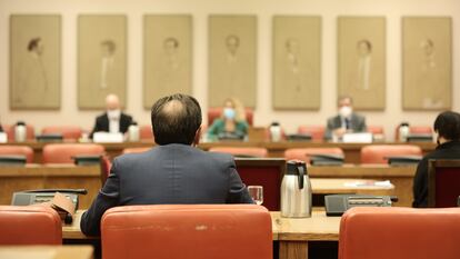 Los dos candidatos avalados por el Gobierno, Inmaculada Montalbán y Juan Ramón Sáez Valcárcel, han pasado el trámite sin mayores dificultades. Ni el PP los ha cuestionado e incluso en el caso de Sáez han recibido los elogios “por su idoneidad absoluta y total” del diputado Josep Pagès, de Junts, por su autopresentación como “juez constitucional”. Sáez era entre los designados por el Gobierno el que podría haber acarreado alguna suspicacia de los portavoces populares, porque en algunos sectores se le considera demasiado próximo a Unidas Podemos. El magistrado, con 36 años de experiencia como juez, número uno de su promoción como fiscal, y tras haber pasado por el Consejo del Poder Judicial o la Audiencia Nacional, no recibió siquiera el más mínimo reparo de la portavoz del PP, Isabel Borrego, que volvió a insistir en que el acuerdo alcanzado por los dos grandes partidos no era “ningún trágala” ni deslegitimaba el examen parlamentario porque en el mismo se trataba solo de “elegir a los mejores entre profesionales de reconocido prestigio”. Txema Guijarro, de Unidas Podemos, sí salió al paso en esta audición concreta para reivindicar que “todas las personas con algo en cerebro puedan tener carga ideológica” si luego saben además actuar con criterio, profesionalidad e independencia.