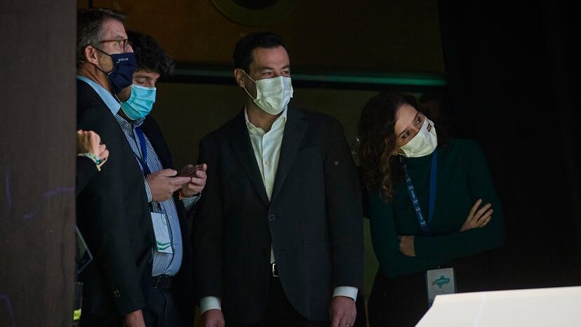 “Este no era el guion previsto, pero hay que tratar de que pase cuanto antes”, ha reconocido a EL PAÍS un interlocutor cercano al presidente andaluz. El PP ha improvisado una charla entre el vicepresidente y el portavoz de la Junta, Elías Bendodo, que no estaba prevista en el orden del día, para restañar la crisis de confianza abierta en el seno del Ejecutivo andaluz tras las declaraciones de Marín —después de tres años en los que los socios del Gobierno, PP y Cs, no han mostrado fisuras de calado― y evitar que el ruido se propagara a lo largo del fin de semana. Era una forma de cerrar cuanto antes la crisis y volver a poner el foco sobre Moreno, pero quien acaparó toda la atención en la inauguración del cónclave fue Ayuso.