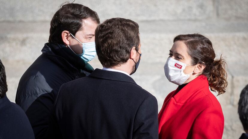 La controversia por el plazo del congreso del PP de Madrid volvió a revelar que el conflicto está lejos de estar solucionado, a pesar de que Casado y Ayuso se dejaron ver este lunes juntos de nuevo en el acto por el día de la Constitución tratando de aparentar normalidad. Los dos políticos charlaron brevemente junto a los presidentes de Galicia, Alberto Núñez Feijóo, y Castilla y León, Alfonso Fernández Mañueco, y estuvieron sentados codo con codo durante el acto.