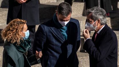 La presidenta del Congreso, Meritxell Batet, ha reclamado este lunes a los partidos y a los políticos representados en las Cortes la recuperación de “la lealtad constitucional” tanto en su comportamiento como en la renovación de los grandes pactos previstos en la Constitución durante su discurso de celebración de su 43° aniversario. El acto ―que se ha vuelto a celebrar, como el año pasado, al aire libre por la pandemia― ha servido a Batet para demandar consensos y pactos, respeto a las instituciones y cumplir con las obligaciones. Batet no ha citado expresamente el bloqueo del PP a la renovación del Consejo General del Poder Judicial que lleva tres años fuera de mandato, pero sí implícitamente: “Podemos estar en desacuerdo con las obligaciones constitucionales y legales, y hasta intentar modificarlas, pero en tanto que vigentes no es cuestionable su cumplimiento”. Los representantes políticos han evidenciado que no existe ahora en España ni un consenso mínimo ni “distensión” suficiente para abordar una reforma de la Constitución que cuente con un respaldo amplio.