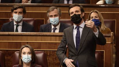El contexto de la subida de decibelios del líder del PP es una batalla con su dirigente más popular, Isabel Díaz Ayuso, que se ha agravado y enquistado —esta semana el enfrentamiento ha saltado de lo orgánico a una discusión sobre la gestión de la pandemia— y que está dando alas a su principal competidor en la derecha, Vox, como demuestra su pujanza en las encuestas. En esa espiral perniciosa del choque con la líder madrileña y el auge de la extrema derecha, Casado cree que tiene que elevar el tono contra el Gobierno para salir a flote.