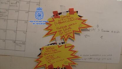 Al realizar el registro, los investigadores localizaron una enorme plantilla en la pared del domicilio para que los consumidores participaran en la rifa de una cesta con droga. Tras apostar diversa cantidad de dinero —cinco euros por el sorteo de Navidad y 10 euros por el del Niño, según especificaban dos carteles de color amarillo pegados en el mural— por acertar las dos últimas cifras, la cesta premiada incluía cocaína, hachís, alcohol, tabaco, dinero en efectivo y un jamón de ocho kilos.