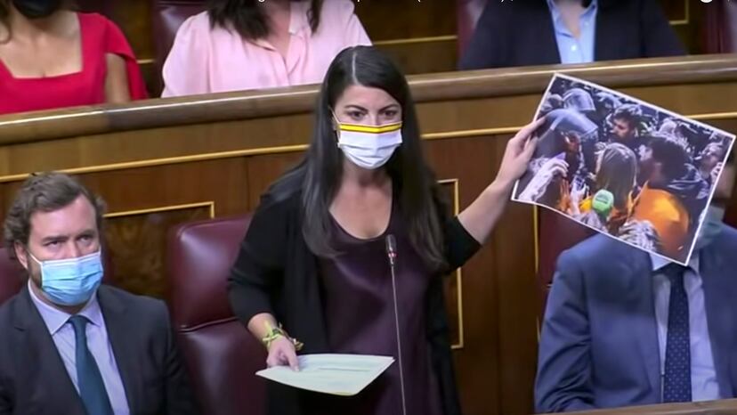 Míriam Nogueras (Junts per Catalunya): “Golpe de Estado togado”. ”¿Qué está haciendo el Gobierno más progresista de la historia frente a este golpe de Estado togado? Aprovecharse, rendirse a ese poder fascista y colaborar con él cuando les ha convenido”.