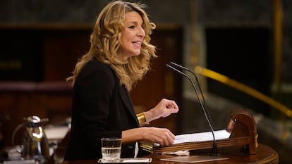 Todo parecía encarrilado el 23 de diciembre, cuando tras nueve meses de negociaciones y a una semana de vencer el plazo fijado por Bruselas para aprobar la reforma laboral, Yolanda Díaz anunciaba el acuerdo alcanzado con la patronal y los sindicatos. Era el colofón a un año de vértigo, en el que la salida de Pablo Iglesias del Ejecutivo la catapultó a la vicepresidencia, le dio el liderazgo de Unidas Podemos y la disparó en las encuestas. El pacto, que la política gallega se había afanado en conseguir desde marzo, estaba llamado a ser la norma más importante de toda la legislatura, y lo que entonces se antojaba más difícil, lograr el consenso de los agentes sociales, era ya una realidad. 42 días después, Díaz ha superado el jueves un examen crucial con la convalidación en el Congreso del decreto ley de la reforma, pero el resultado de la votación, salvada por un error del PP después de que UPN cambiara el sentido del voto, y con la negativa de los nacionalistas de ERC, PNV, EH Bildu y BNG y el apoyo de Ciudadanos y PDeCAT no era el deseado para la vicepresidenta. “He de reconocerlo, no lo he logrado”, ha afirmado Díaz en su intervención, que ha criticado no haber podido hablar “del contenido” de la norma con algunos grupos políticos. La aprobación con la derecha deja fracturas en el bloque de investidura, y el desmarque de los aliados habituales del Gobierno supone un primer revés para la vicepresidenta y marca los límites de su futuro proyecto político.