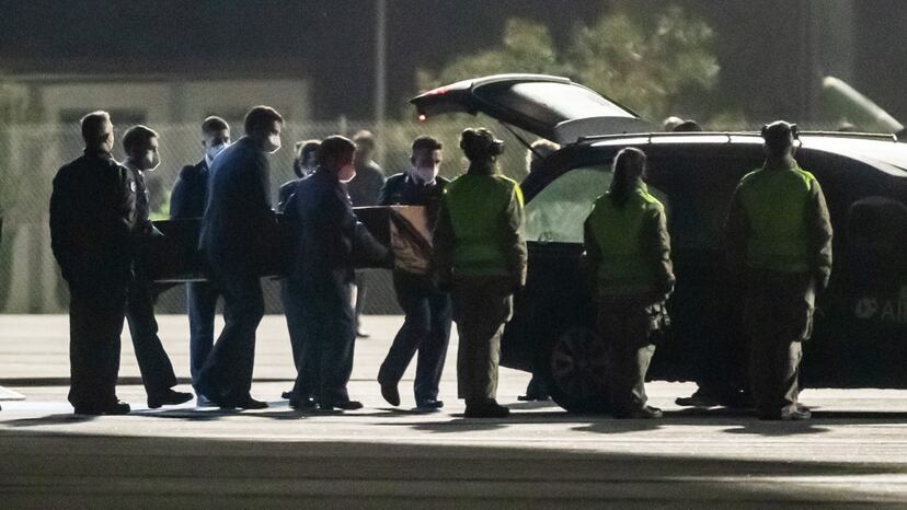 Solo cinco de los cuerpos rescatados han llegado a Santiago en este avión militar fletado por el Gobierno. Por deseo de sus familias, los otros cuatro fallecidos serán tra
