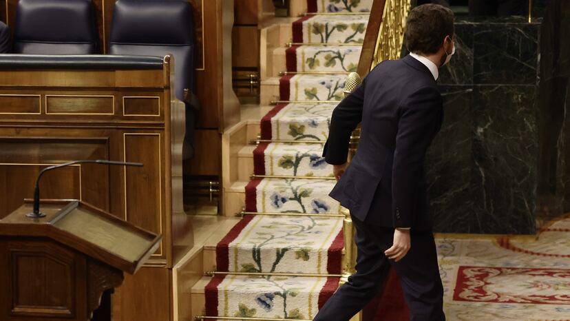 Pero es que la obra no ha terminado todavía. Nuestro autor se había reservado varios ases en la manga para después del que parecía el monólogo final. Primero, el momento de los aplausos. ¡Qué aplausos tan teatrales los de quienes días antes habían abandonado a su suerte al protagonista! Ni el mismísimo Chéjov habría imaginado tantas capas de sentido en un solo instante. ¡Y esa reacción del protagonista de quitarse la mascarilla como si fuera un último intento de dar la cara ante los traidores! Aunque lo mejor, sin duda, es su gesto final: un mutis digno de pasar a la historia del teatro y por el que merece la pena haberse tragado el resto del espectáculo. Por sorpresa y sin aspavientos. Impecable. A su pesar, la mejor actuación de Casado en el Congreso de los Diputados ha sido la de su despedida. La que quedará para el recuerdo. Resulta tremendamente poética (y compasiva por parte del dramaturgo) esa salida a tiempo de un personaje que ya no tiene nada que hacer en escena. ¿Qué podría haber hecho sentado en su escaño después de todo lo pasado?