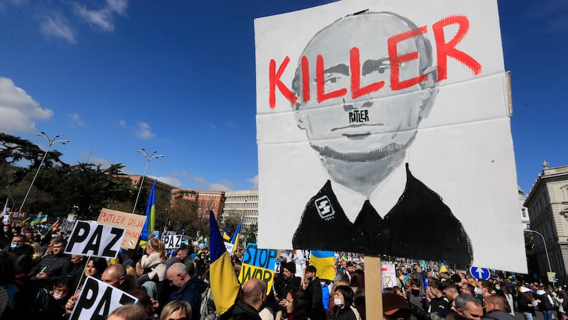 Miles de personas se han manifestado este domingo en apoyo al pueblo ucranio en varias ciudades de España. En Madrid, unas 40.000 personas se han sumado a la concentración Por Ucrania, según datos de la Delegación del Gobierno. La marcha ha partido de la plaza de Colón a las 12.00 horas con dirección a la plaza de Cibeles. Muchos de los participantes han portado banderas ucranias de distintos tamaños y multitud de carteles en español e inglés. Entre las consignas de los manifestantes, mensajes como “No a la guerra” o “Putin go home” (Putin vuelve a casa, en inglés), para mostrar su solidaridad con el país. Las protestas se suman a las que se han ido viviendo en otras capitales del mundo.