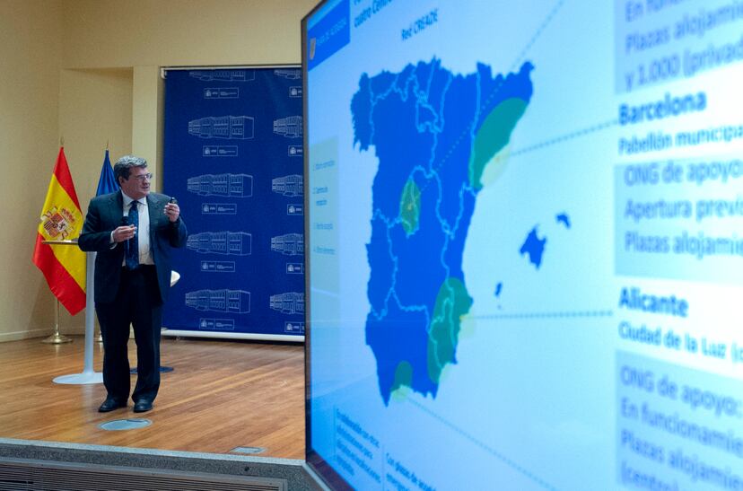 Escrivá también insistió este martes en el papel de los centros de derivación que ha habilitado su ministerio para canalizar el flujo de refugiados que lleguen. Finalmente, serán cuatro, situados en Madrid, Barcelona, Alicante y Málaga. El ministro mantiene que, independientemente de la región a la que lleguen los desplazados, es recomendable que acudan a estos cuatro centros. En ellos, afirmó, se garantiza la tramitación exprés de la autorización de residencia y trabajo y alojamiento temporal, sea en el centro o en hoteles cercanos. Escrivá ha planteado incluso la posibilidad de un operativo de transporte para llevar a los desplazados hasta estas cuatro provincias. “Es muy importante que el mayor número de refugiados entre en estos centros porque potencialmente recibirán una mejor atención”, defendió.